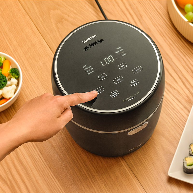 8 funcţii de gătit - Sushi, Orez alb, Gătire rapidă, Conţinut scăzut de carbohidraţi, Risotto, Orez brun, Prăjitură, Abur