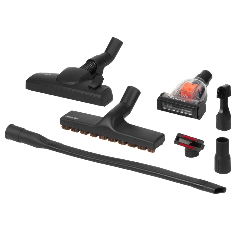 Accesorii furnizate: duză universală pentru podea, duză pentru crăpături, duză pentru perie, duză pentru tapiţerie, duză pentru crăpături lungă flexibilă, mini perie Turbo, duză pentru podea tare