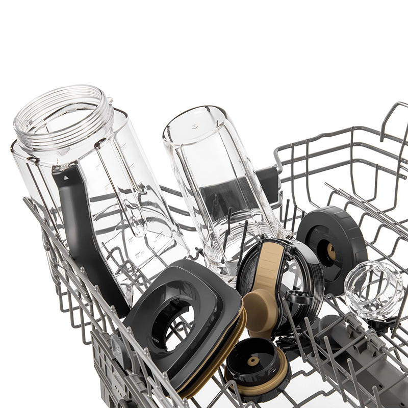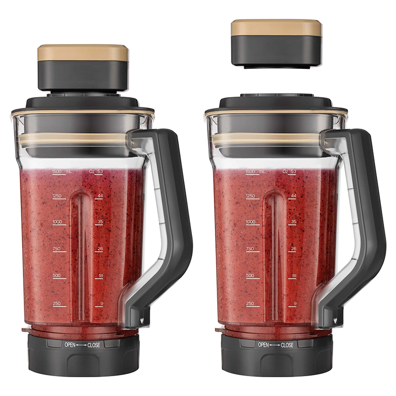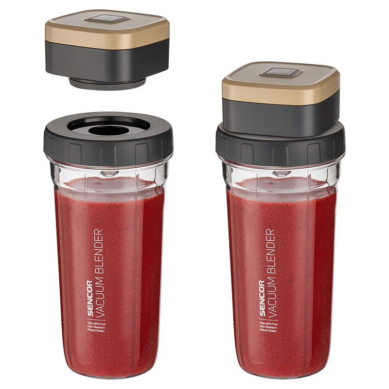 Pachetul include: recipient pliabil de 1,5 litri, recipient de 0,7 litri pentru depozitarea băuturilor proaspete (smoothie-uri), unitate de vidare.