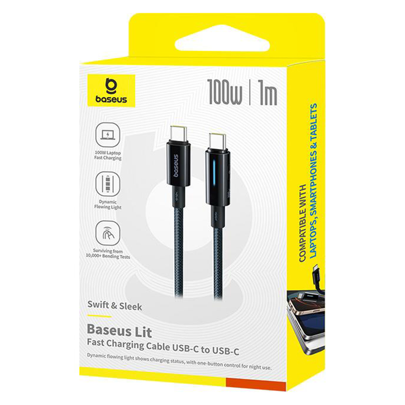Cablul de date cu încărcare rapidă Baseus Lit Button-Control de culoare negru cosmic este un cablu de înaltă performanță conceput pentru încărcare rapidă și transfer de date.