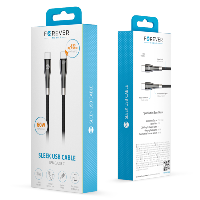 Cablul Sleek Forever USB-C la USB-C de 60 W, cu performanță și durabilitate maximă, îndeplinește cerințele celor mai exigenți utilizatori.