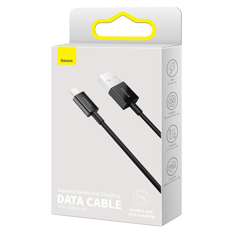 Baseus Superior este un cablu echipat cu un conector micro-USB. Fabricat din silicon flexibil pentru a asigura cea mai lungă durată de utilizare posibilă.