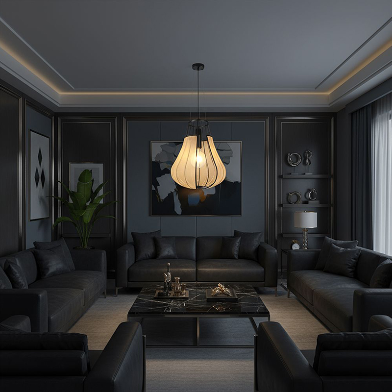 CORP ILUMINAT CU SOCLU E27 420X500MM - NEGRU MAT/BEJ