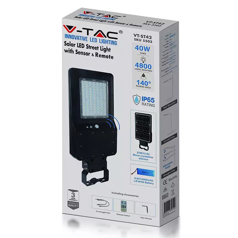 CORP ILUMINAT STRADAL LED SOLAR 40W 120LM/W 6000K ALB RECECod produs: SKU-5504