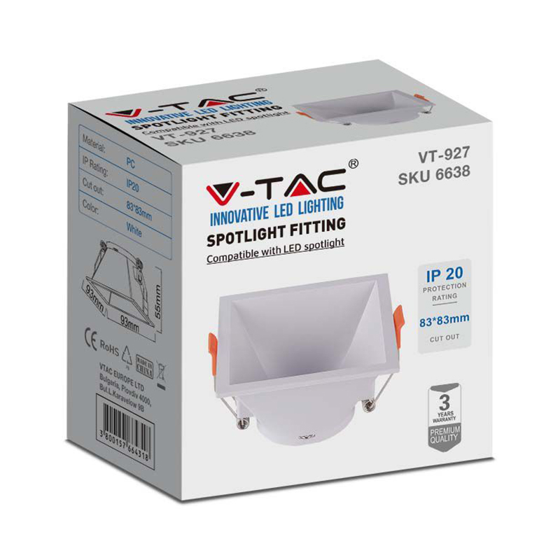 CORP SPOT GU10 PATRAT 93X93X55MM - ALB