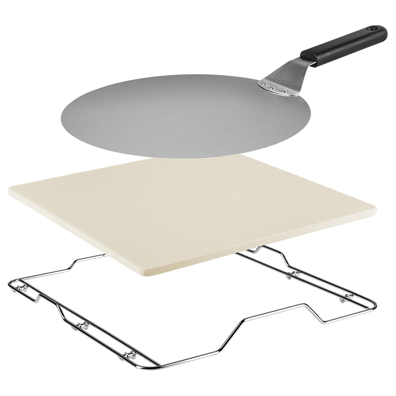 Setul include: piatră, suport de piatră, spatulă pentru pizza, manual de utilizare
