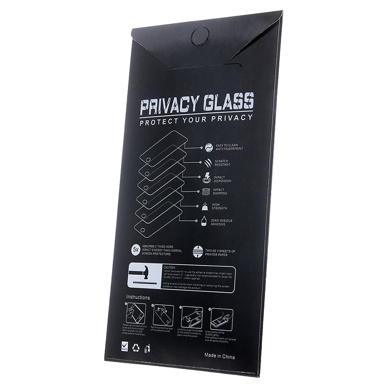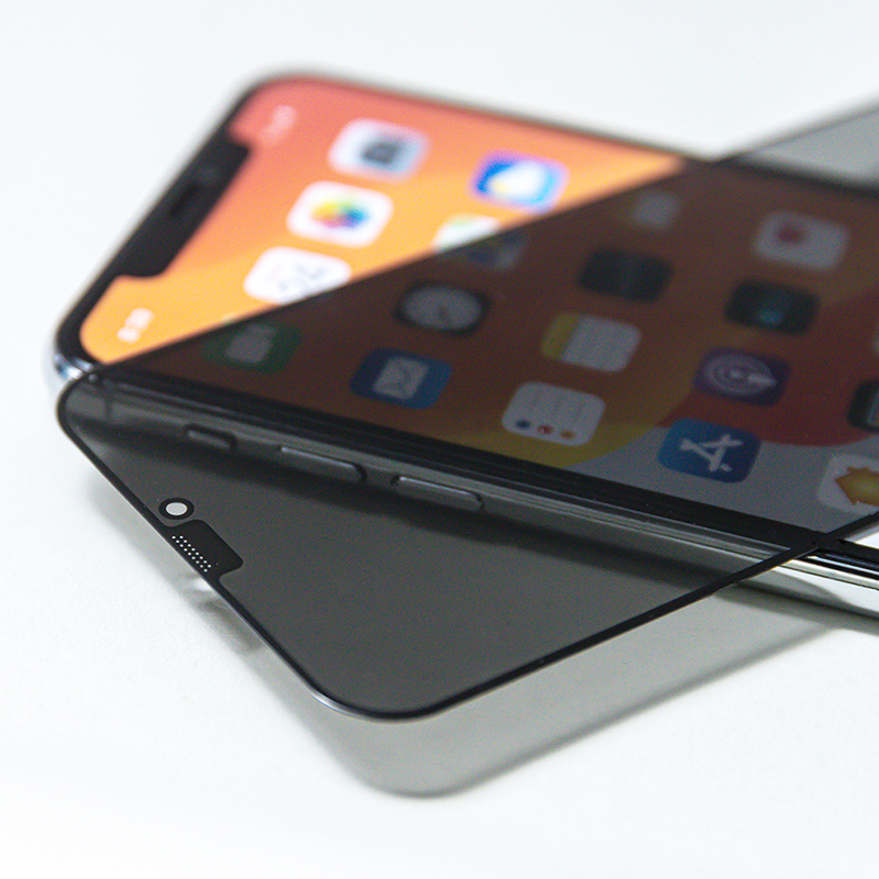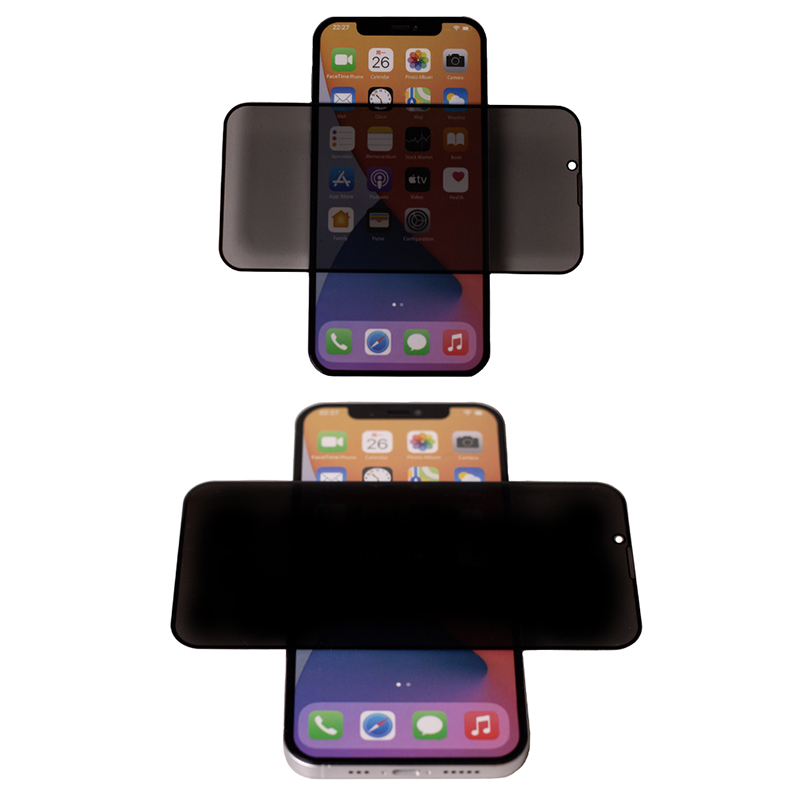 Funcția Anti-Spy este o structură de întunecare încorporată în sticla temperată. Filtrul bidirecțional protejează ecranul de a fi văzut dintr-un unghi de 28° din orice parte.