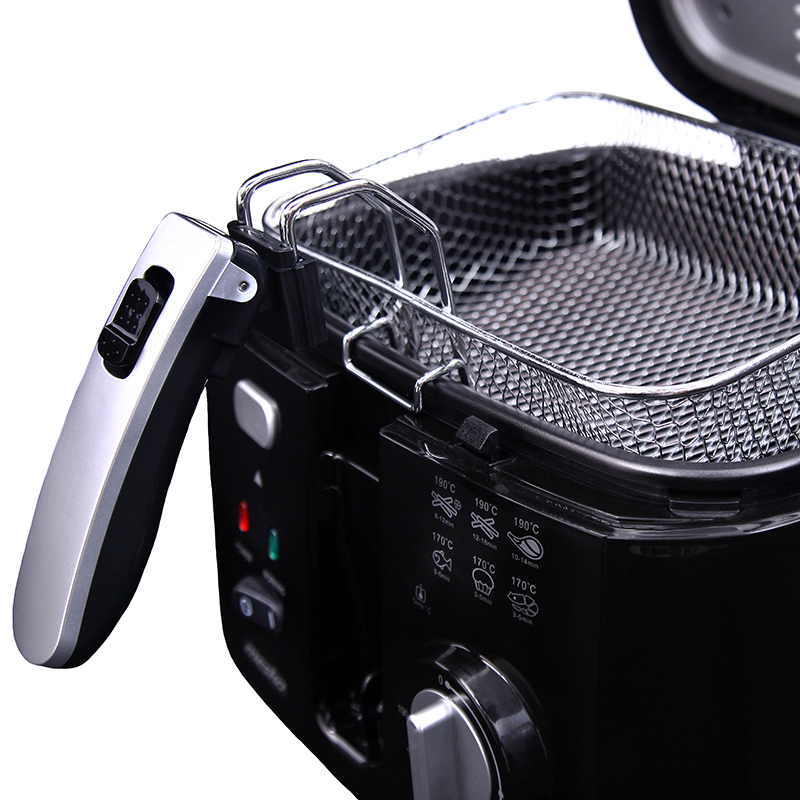 Datorită friteuzei AD4906, puteţi prăji cartofi prăjiţi, inele de ceapă, legume sau carne cu uşurinţă acasă: dispozitivul este echipat cu un filtru în capac şi un buton de deschidere iluminat. Nu veţi arde mâncarea datorită termostatului reglabil. Puteţi scurge surplusul de grăsime datorită coşului cu funcţie de ridicare, care are un mâner pliabil. Dispozitivul este, de asemenea, uşor de curăţat, deoarece este echipat cu un recipient de ulei detaşabil.