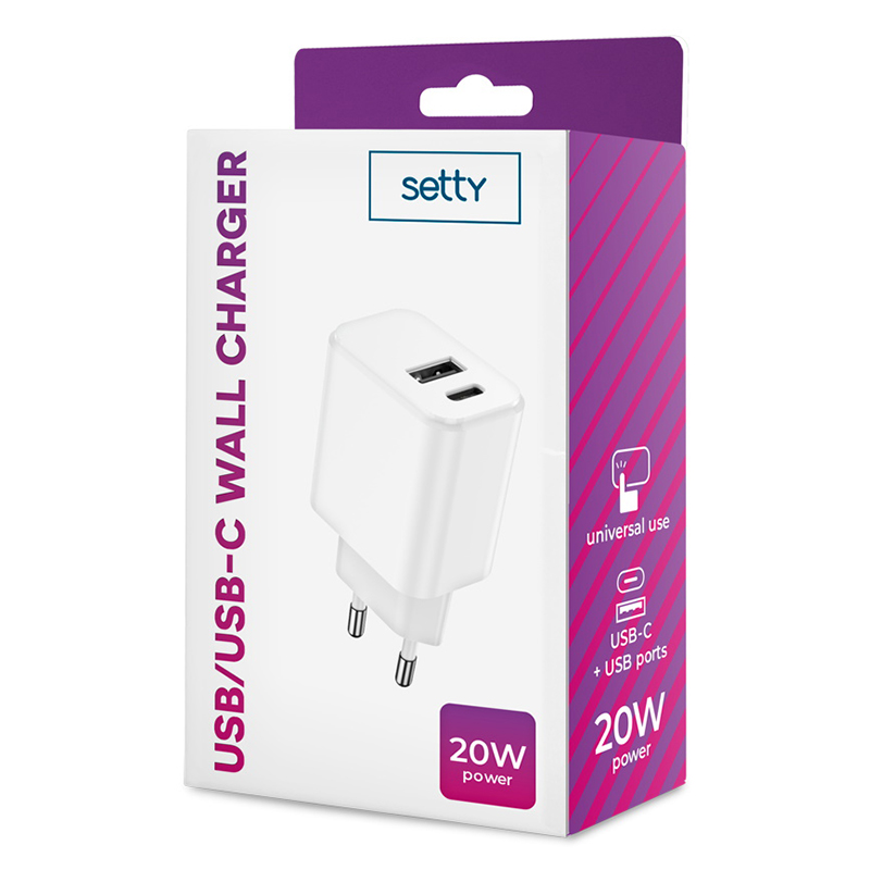 Încărcător USB de perete cu un curent maxim de 3A, care permite încărcarea rapidă a bateriei unui telefon mobil sau a altui dispozitiv portabil. Dispune de două ieșiri - USB-A și USB-C, permițând încărcarea a două dispozitive simultan. Încărcătorul se caracterizează printr-un design simplu și dimensiuni reduse, fiind ușor de utilizat și practic pentru utilizarea zilnică.