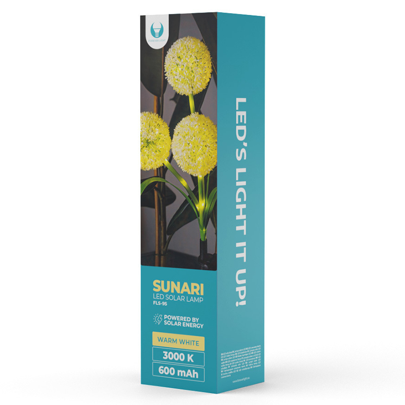 Decorațiunea solară LED Sunari Ornamental Garlic FLS-95 este o compoziție care imită un tufiș de usturoi ornamental. Datorită tehnologiei aplicate, această decorațiune este echipată cu o diodă LED încorporată, care, în combinație cu energia solară, se aprinde automat cu o lumină caldă plăcută după amurg.
