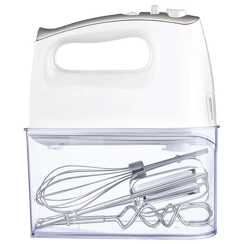 Mixerul de mână Sencor SHM 5206WH-EUE3 este echipat cu 5 nivele şi un buton turbo. Puteţi pregăti uşor şi simplu ingredientele necesare. Este silenţios în timpul utilizării, dar oferă totuşi performanţe maxime. Poti face prajituri cu aluat mai delicate, usoare, cu ajutorul batoanelor metalice, si poti amesteca paine irezistibila si paste traditionale cu bratele metalice de framantat. Ambalajul include o cutie practica pentru depozitarea accesoriilor.
