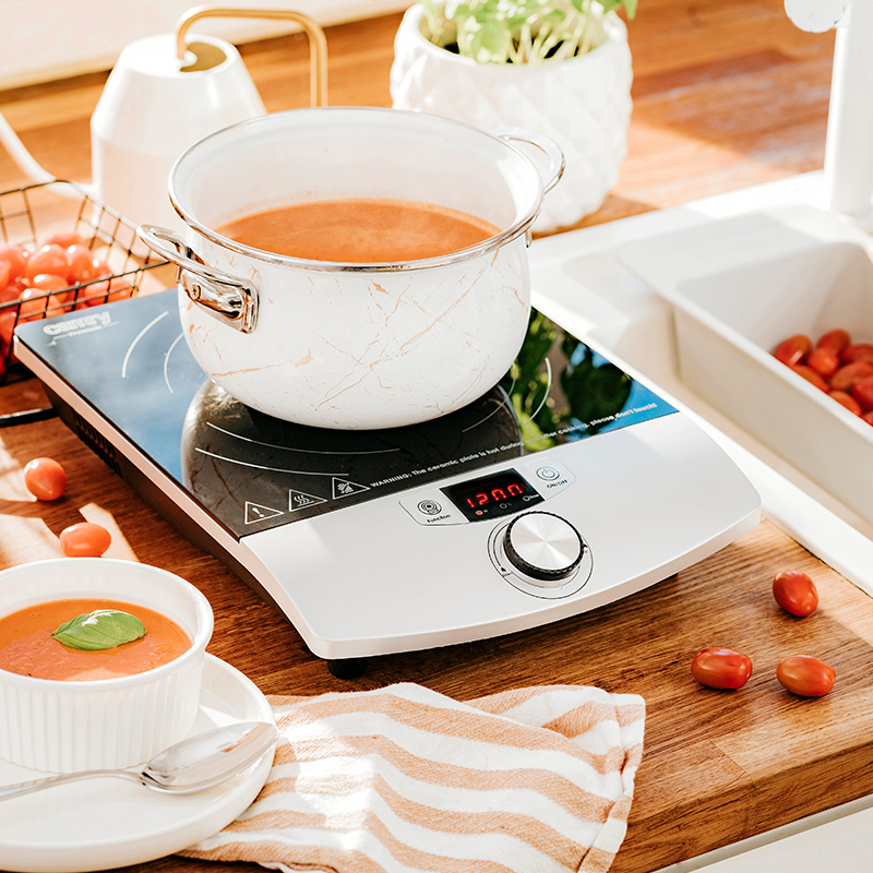 Plita cu inducţie cu un singur ochi, este un mini echipament de bucătărie. Poate fi folosit pentru reîncălzirea sau prepararea meselor care nu necesită utilizarea simultană a două oale sau tigăi. Plita CR 6515 poate fi considerata o opţiune de urgenţă, în timp ce aragazul principal nu este disponibil, sau poate deveni un accesoriu permanent al unei case de vară, bucătării mici, camere închiriate sau alte încăperi.