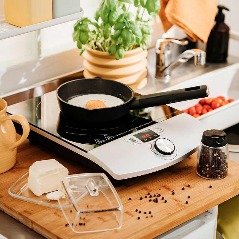 Plita vă permite să reglaţi puterea de încălzire în două moduri, prin setarea temperaturii sau puterii dorite. Plita cu inducţie se caracterizează printr-o eficienţă energetică ridicată, depăşind cu mult aragazurile electrice tradiţionale - este o alegere excelentă pentru cei care sunt atenţi la valoarea facturilor de electricitate.