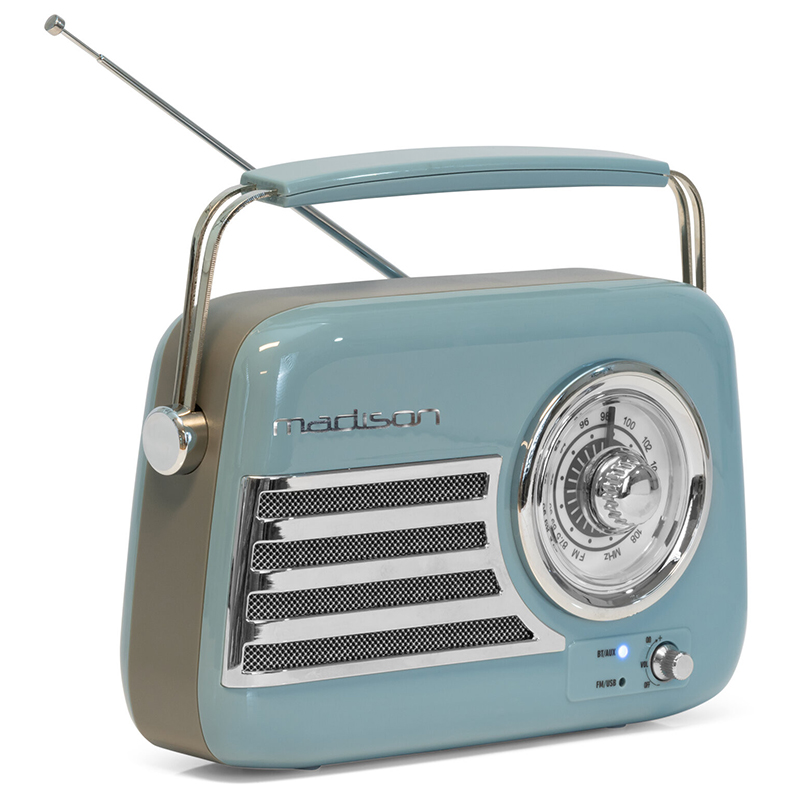 Radio portabil, reîncărcabil prin USB, pentru nostalgicii care doresc să asculte melodiile lor preferate cu un dispozitiv vintage autentic, profitând în același timp de tehnologiile moderne.