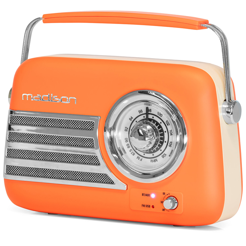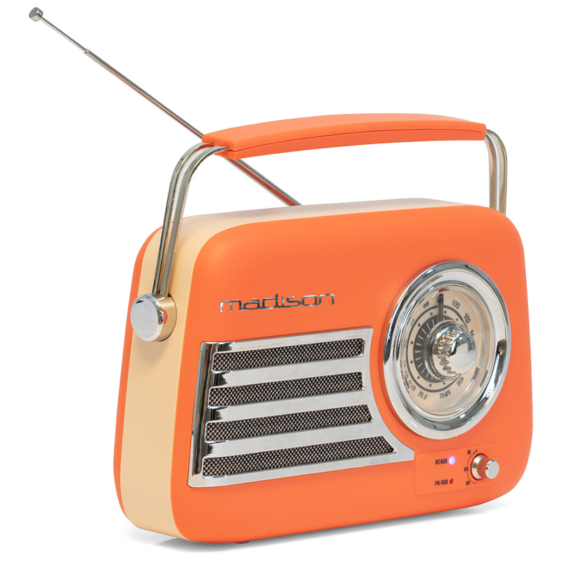 Radio portabil, reîncărcabil prin USB, pentru nostalgicii care doresc să asculte melodiile lor preferate cu un dispozitiv vintage autentic, profitând în același timp de tehnologiile moderne.
