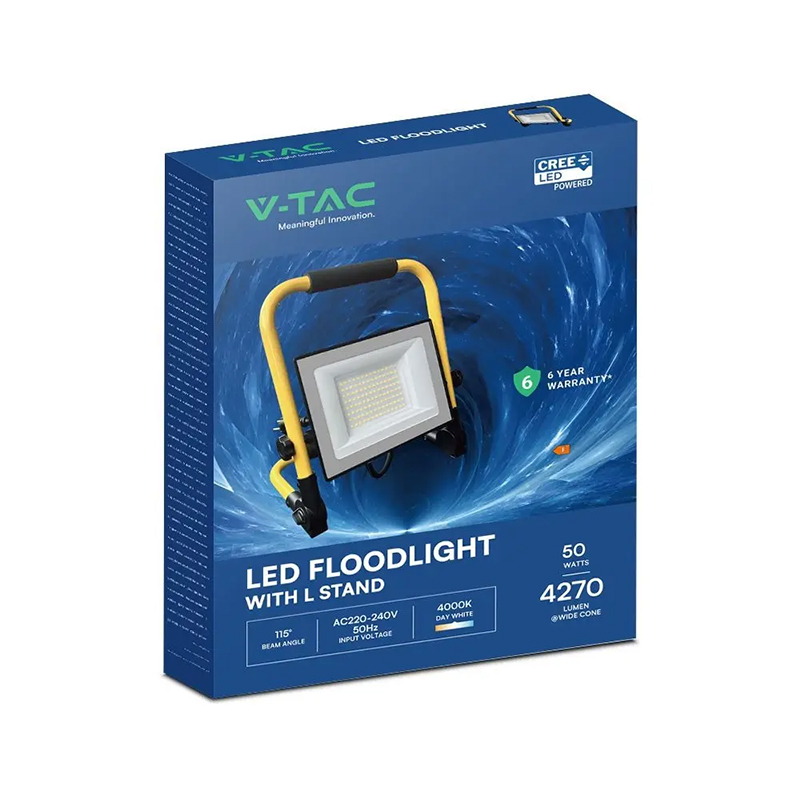 REFLECTOR LED 50W 6500K CABLU 3M + STAND CIP CREE - NEGRU/GALBEN