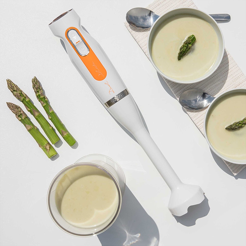 Blenderul Sencor SHB 4260WH-EUE3 vă poate ajuta să pregătiţi rapid supe cremă, sosuri şi alimente pentru copii. Motorul de 600 W are 2 viteze. Iar lamele de tocat din otel inoxidabil aproape nu cunosc obstacole. Mânerul cu design ergonomic asigură o prindere sigură şi confortabilă. Pe lângă paharul de amestecare de 700 ml, există şi un recipient de 500 ml, care este excelent pentru tocat, precum şi un tel de metal.