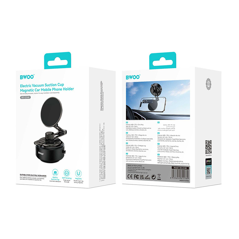 Datorită ventuzei electrice cu o singură atingere, pur și simplu apăsați suportul pe parbriz, tabloul de bord sau fereastră pentru a se atașa automat.