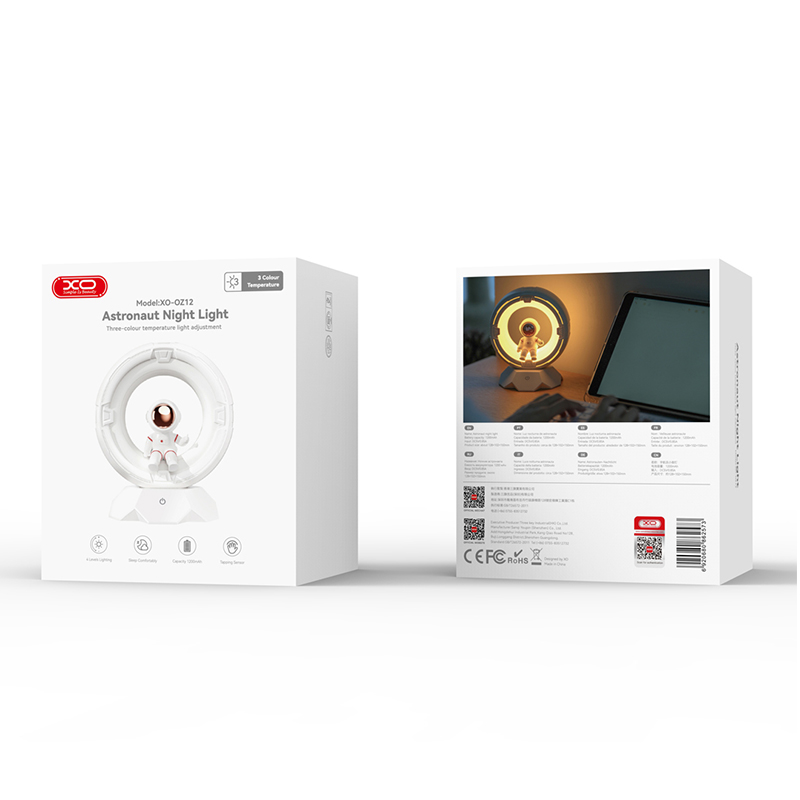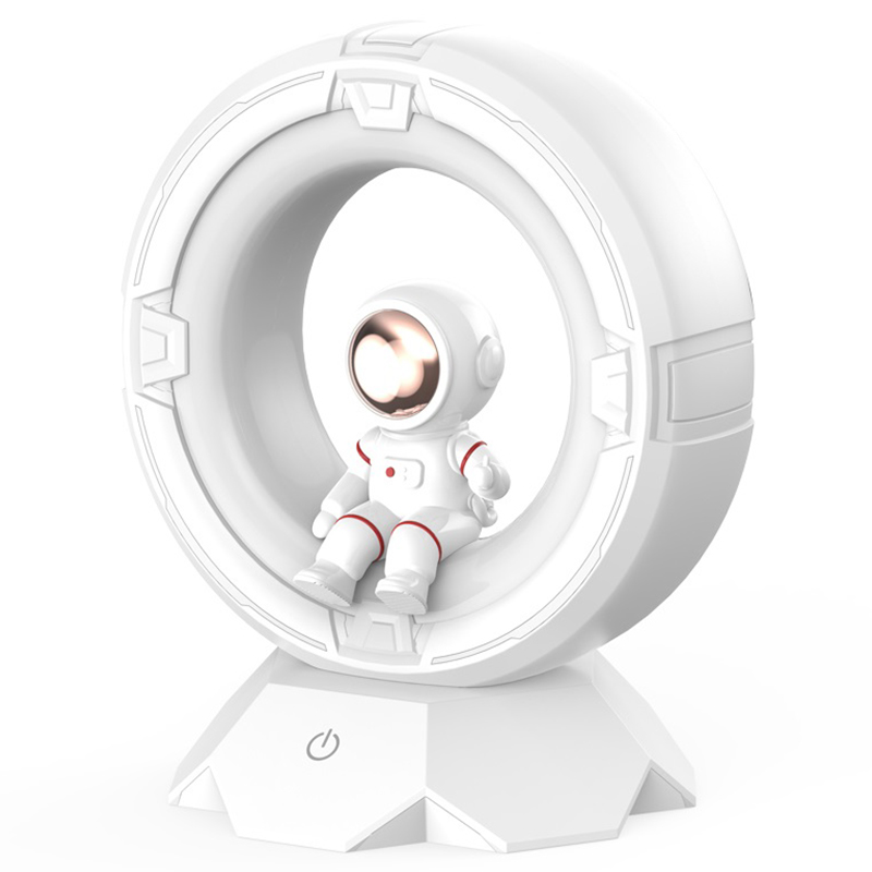 Lampă LED elegantă cu temă de astronaut și culoare variabilă a luminii. Echipată cu o baterie mare încorporată cu o capacitate de 1200mAh, permite 3 ore de iluminare continuă.